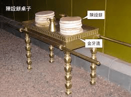 出埃及記 25:30:「要在桌上在我面前常擺陳設餅。」