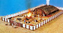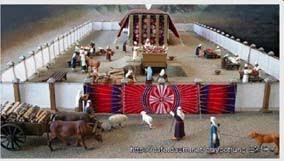 「你要為帳幕做院子……這院子要長一百肘、寬五十肘、高五肘;用撚的細麻做帷子……院子的門簾要用藍色、紫色、朱紅色線和撚的細麻織成……」(出埃及記 27:9–16)