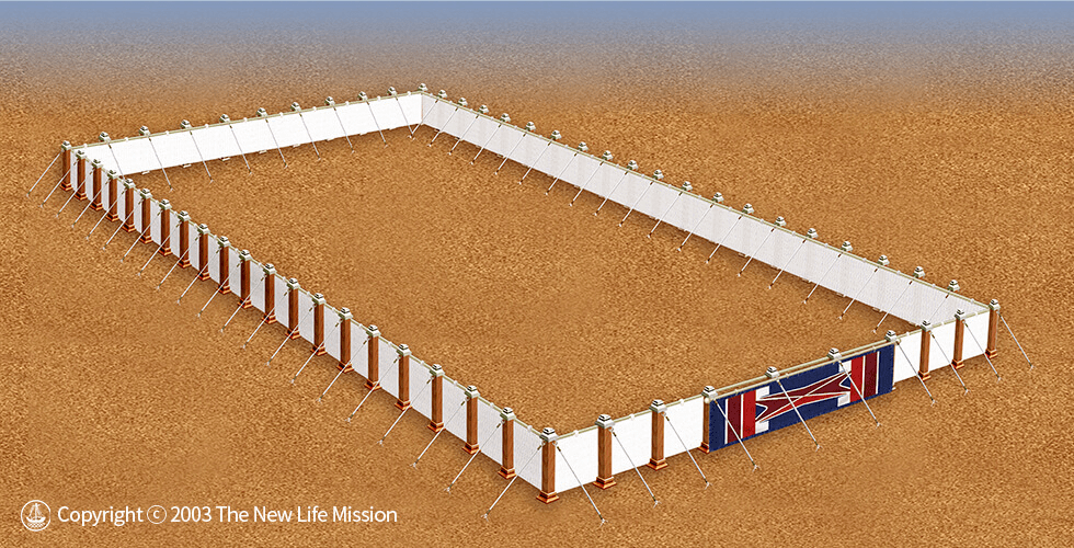 神吩咐摩西為會幕造一個外院,尺寸為長100肘、寬50肘(約45公尺 × 22.5公尺),用撚的細麻織成的帷子圍繞四周,高度五肘(約2.25公尺)。這不只是功能性設計,而是神用空間語言對人說話。