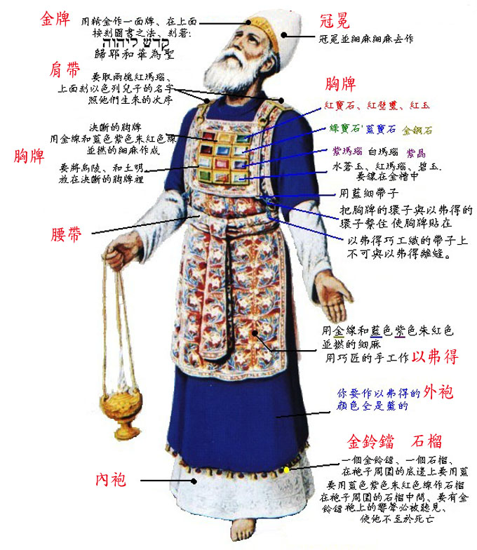祭司是神與人之間的橋梁,承接天與地的使命。亞倫和他的子孫不是自取尊榮,而是「被召」來「供祭司的職分」,透過聖潔的生活與獻祭的儀式,帶領百姓親近神。從出埃及記28章看,祭司穿的聖衣從裡到外都有象徵意義——胸牌上鑲有以色列十二支派的名字,代表他們在神面前「常被記念」(出28:29);額上的金牌寫著「歸耶和華為聖」,表明這個職分的分別為聖與責任重大。